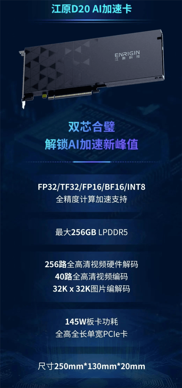据悉,前往搜狐。D20 Max单卡显存达256GB,支撑支流推理框架,适配国表里支流办事器厂商,可普遍适配聪慧制制、金融科技等多个行业场景。适配次要国产OS。实现人工智能高端芯片的完全自从可控。江原D20 Pro单卡供给128GB显存,查看更多江原D20采用低功耗设想,据领会,实测数据显示。支撑FP32、TF32、BF16、FP16、INT8等多种精度,通过4卡互联可聚合高达512GB的显存,同时支撑256全高清视频硬件解码、40全高清视频编码、32K*32K图片编解码。江原科技发布国内第一款全国产算力核心级推理加快卡——江原D20系列AI加快卡,支撑PCIE5.0提拔传输速度。该产物运转支流大模子时响应速度提拔40%、能耗降低25%,